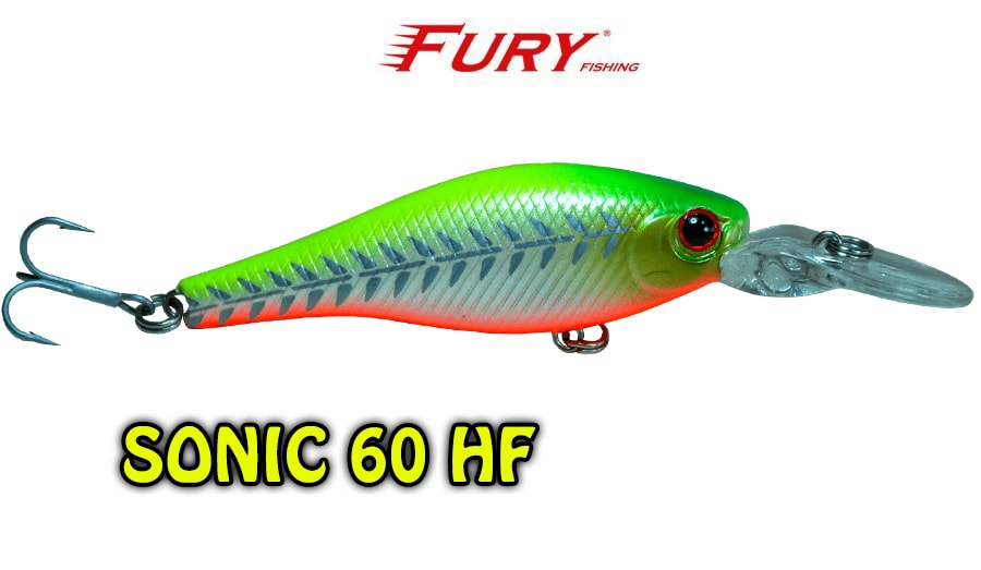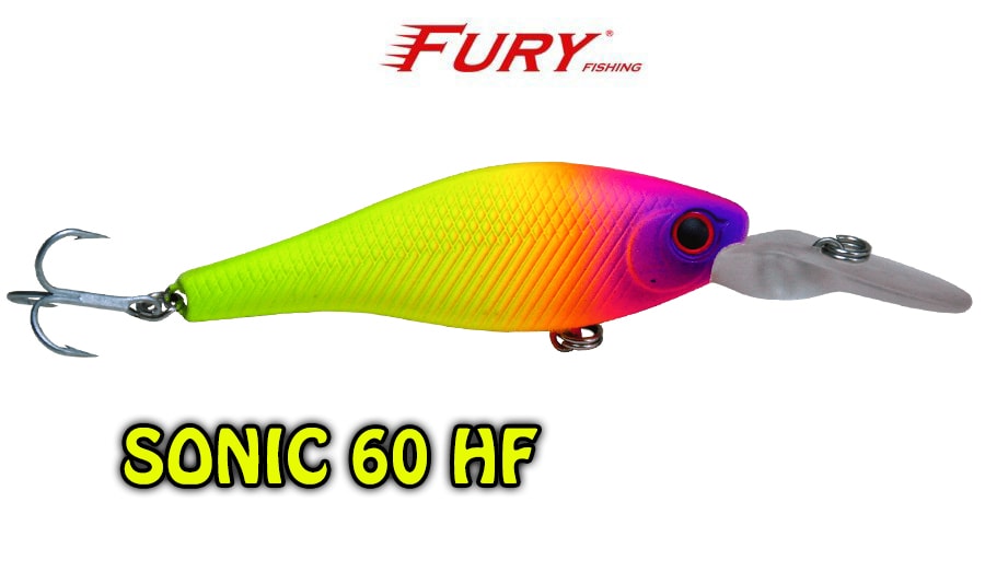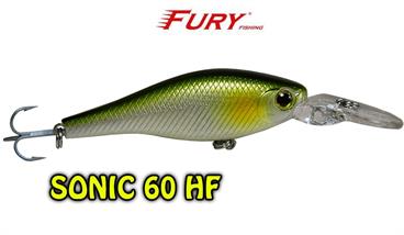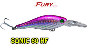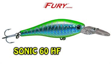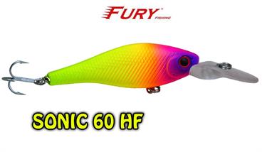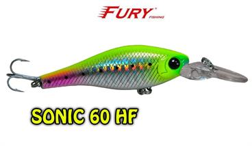 Produzida em ABS de alta qualidade, com olhos 3D e garateias galvanizadas VMC, a isca Sonic 60HF é um plug de meia água floating especialmente aliviado fazendo com que a isca flutue rapidamente quando trabalhado com pequenos toques, se tornando irresistível para os peixes predadores como robalos, tucunarés e traíras.
