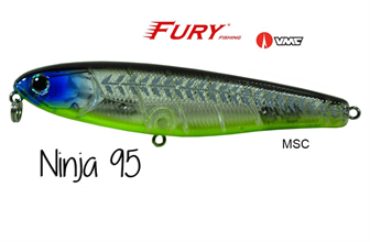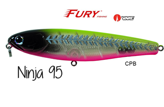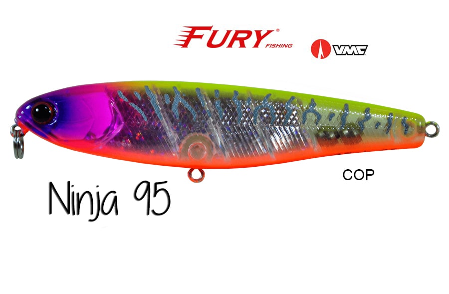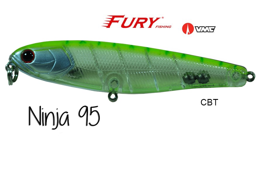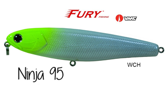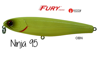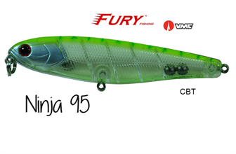 A Ninja 95 é construída com os melhores materiais do mercado mundial. A Ninja 95 possui duas esferas de tungstênio micrometrado provocando um balanço perfeito e uma ação extremamente versátil, podendo ser trabalhada tanto com pequenos toques lentosde ponta de vara, como com trabalhos mais rápidos e contínuos fazendo com que a isca produza um nado em "z" errático e irresistível aos predadores. Pode ser utilizada tanto em água doce como em mangues e água salgada.